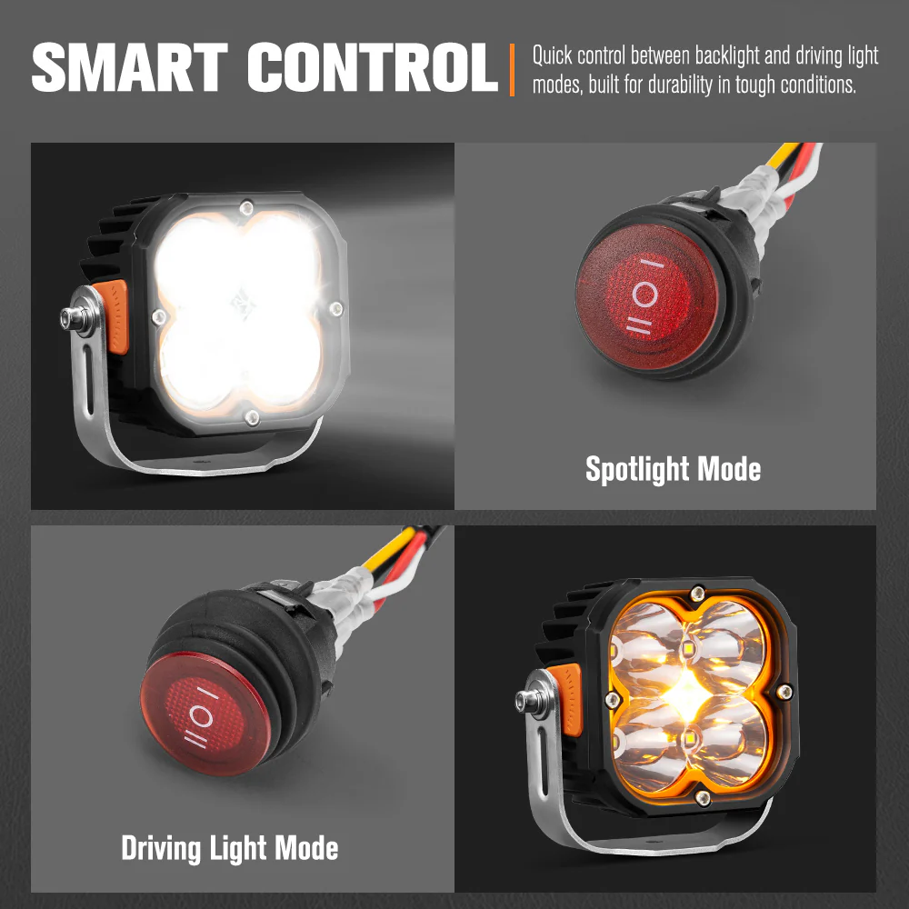 Flush Mounted Switch: The pre-wired switch offers effortless control between backlight and driving light modes, enabling quick adjustments to suit any adventure.